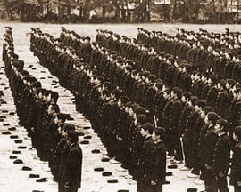 入学直後、毎朝のクラス練習と放課後裏山での団歌練習、今では懐かしい思い出です。